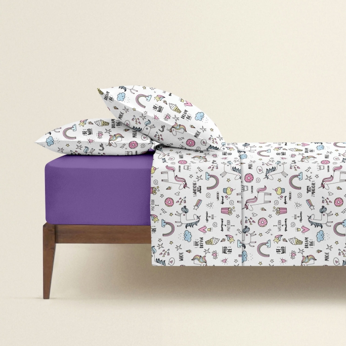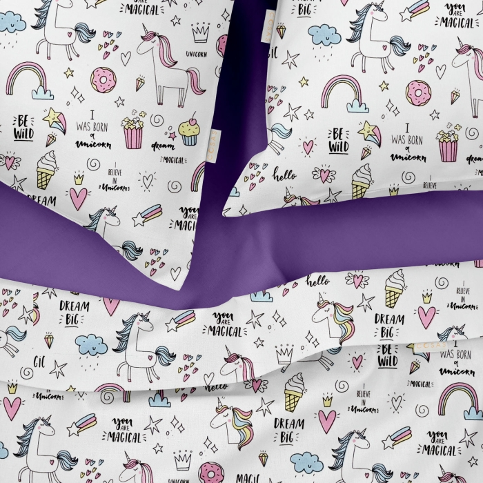 Полуторна постільна білизна з простирадлом на резинці UNICORN & SWEETS CS4