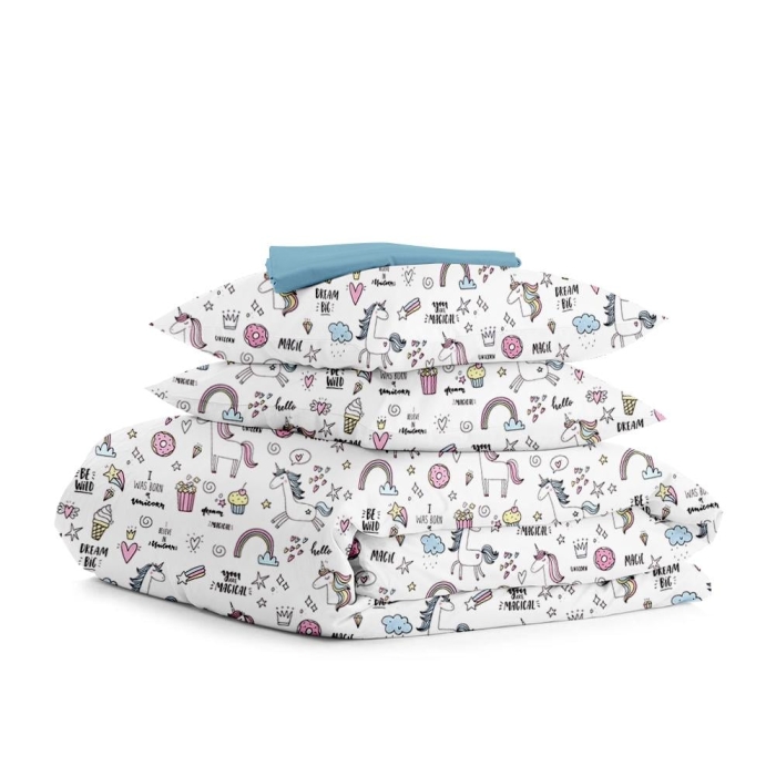 Полуторна постільна білизна з простирадлом на резинці UNICORN & SWEETS