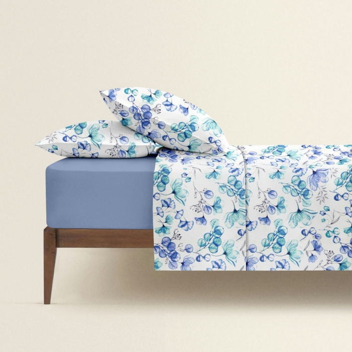 Сімейна постільна білизна з простирадлом на резинці AQUARELLE FLOWERS CS1