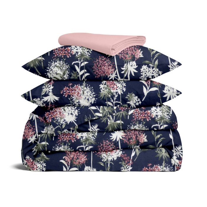 Schnellsuche , , Синій, Квіти, Ранфорс, 2х160х220 см, Сімейна постіль з простирадлом на резинці BOTANIQ GARDEN
