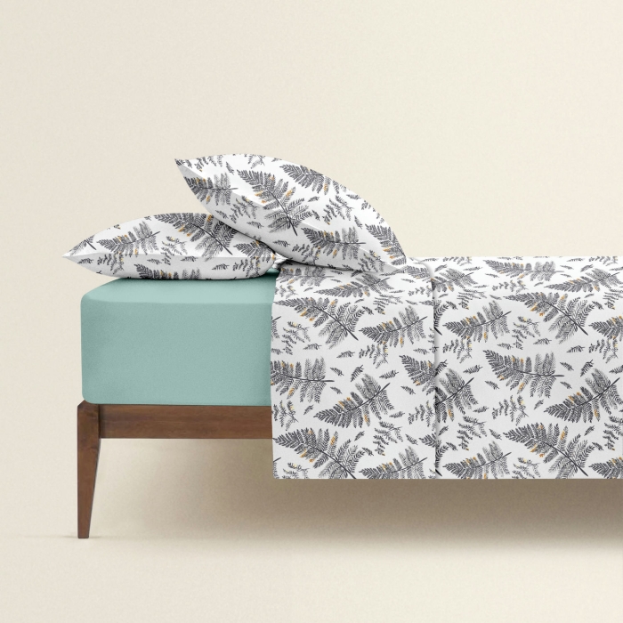 Schnellsuche , , Сірий, Листя, Ранфорс, 2х160х220 см, Сімейна постіль з простирадлом на резинці FOREST