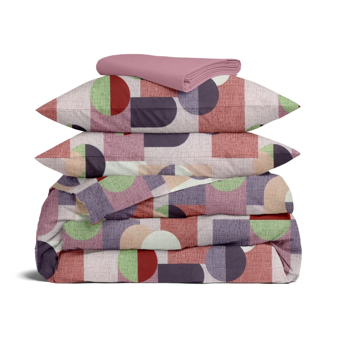 Schnellsuche , , Фіолетовий, Геометрія, Ранфорс, 2х160х220 см, Сімейна постіль з простирадлом на резинці GEOMETRY