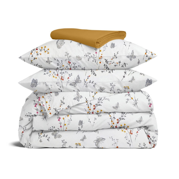 Schnellsuche , , Сірий, Метелики, Ранфорс, 2х160х220 см, Сімейна постіль з простирадлом на резинці MIDSUMMER