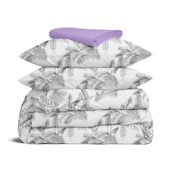 Schnellsuche , , Сірий, Тропіки, Ранфорс, 2х160х220 см, Сімейна постіль з простирадлом на резинці PALMS