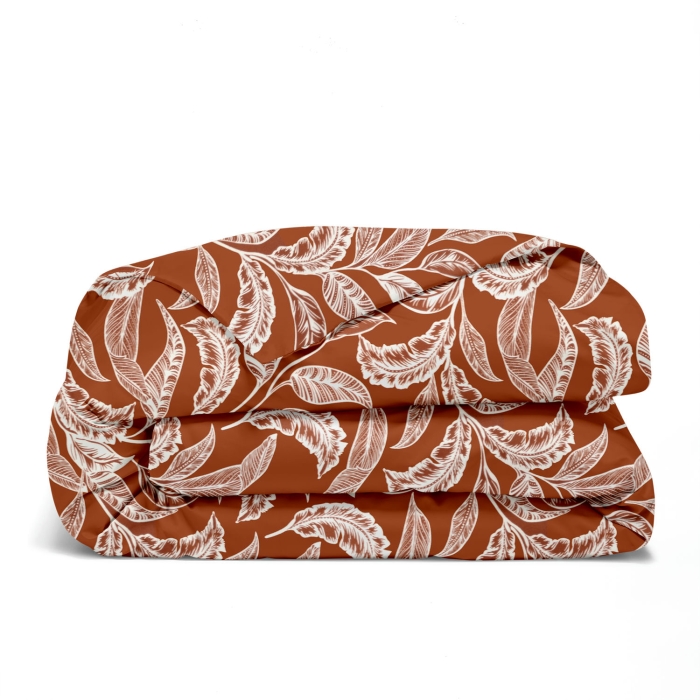 Schnellsuche , , Теракотовий, Листя, Ранфорс, 2х160х220 см, Сімейна постіль з простирадлом на резинці TERRACOTTA