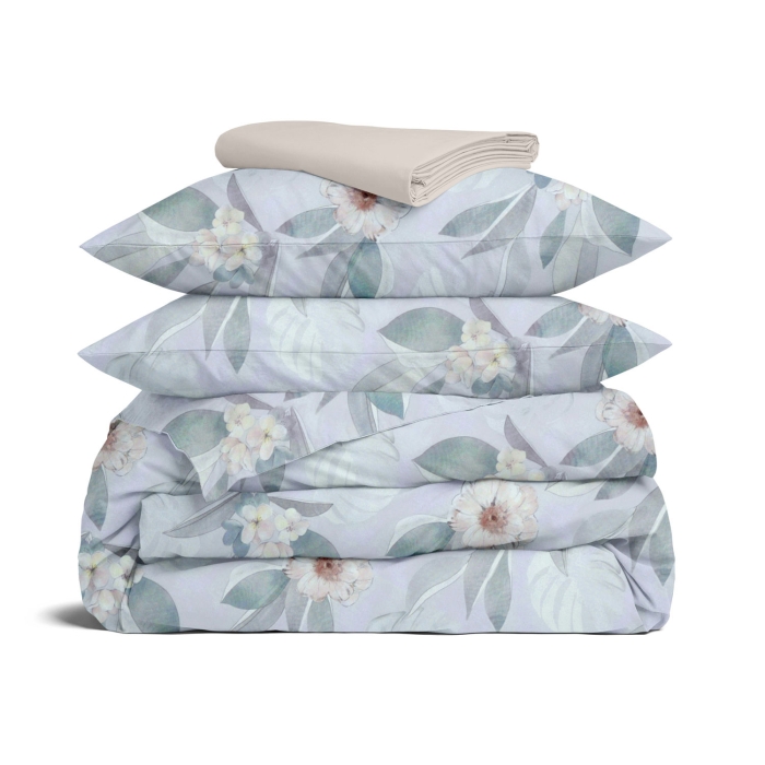Сімейна постільна білизна з простирадлом на резинці APPLE FLOWERS CS2