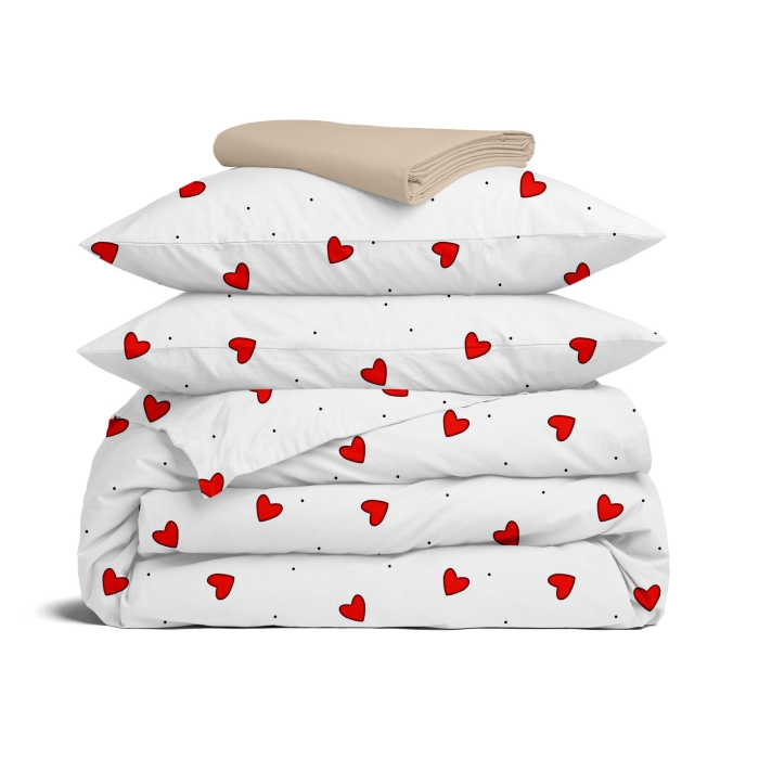 Сімейна постільна білизна з простирадлом на резинці CHERRY HEARTS