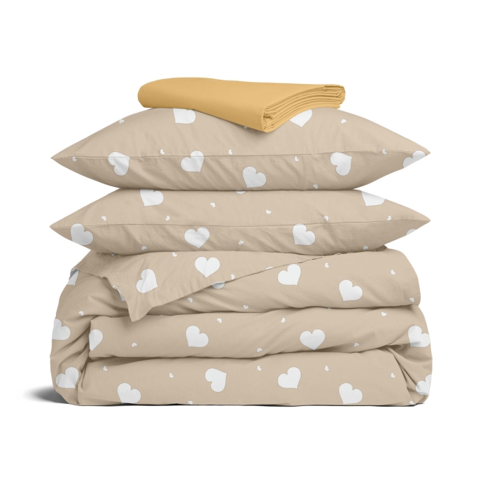 Сімейна постільна білизна з простирадлом на резинці CREAM HEARTS