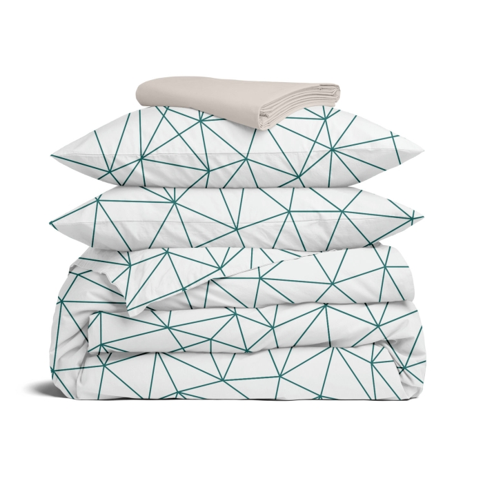 Schnellsuche , , Зелений, Геометрія, Ранфорс, 2х160х220 см, Сімейна постільна білизна з простирадлом на резинці CRYSTAL LINES