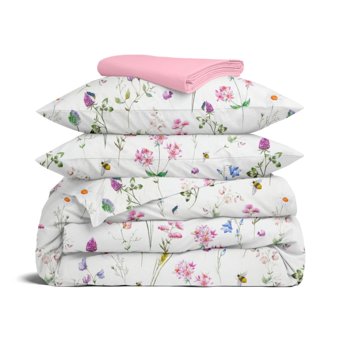 Сімейна постільна білизна з простирадлом на резинці FLORAL DANCE CS1