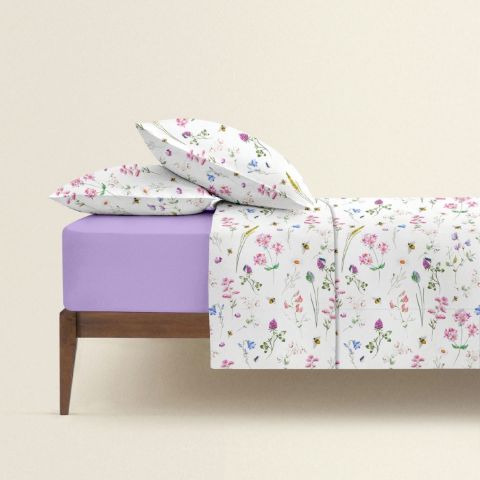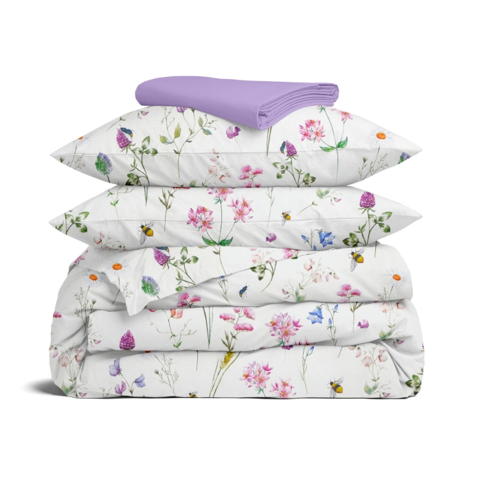 Сімейна постільна білизна з простирадлом на резинці FLORAL DANCE CS2