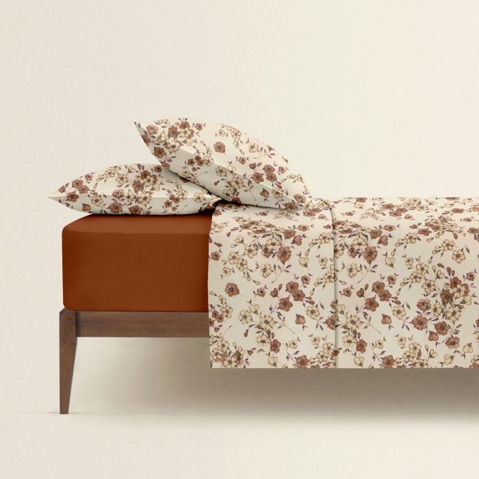 Schnellsuche , , Бежевий, Квіти, Ранфорс, 2х160х220 см, Сімейна постільна білизна з простирадлом на резинці FLORAL MOOD