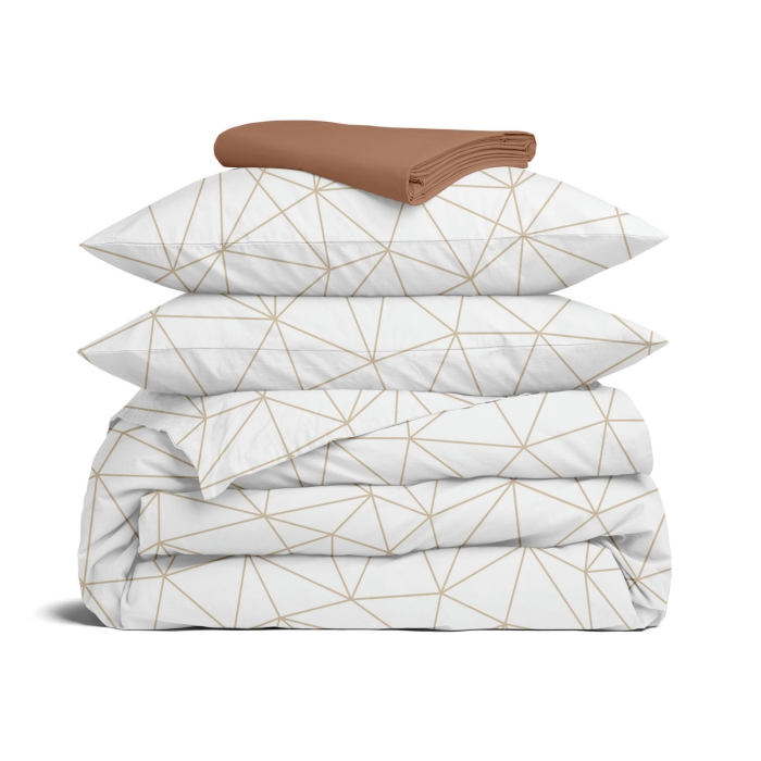 Schnellsuche , , Бежевий, Геометрія, Ранфорс, 2х160х220 см, Сімейна постільна білизна з простирадлом на резинці NATURAL LINES