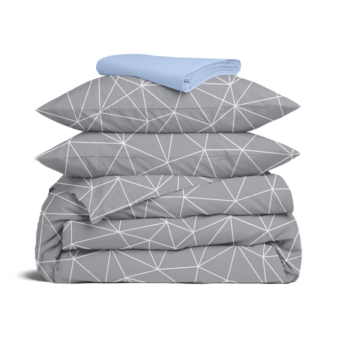 Schnellsuche , , Сірий, Геометрія, Ранфорс, 2х160х220 см, Сімейна постільна білизна з простирадлом на резинці STONE LINES