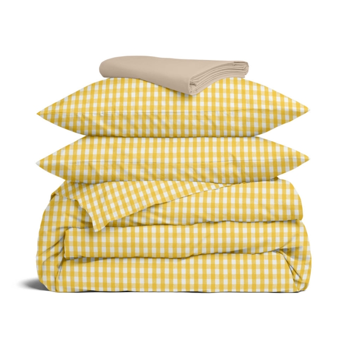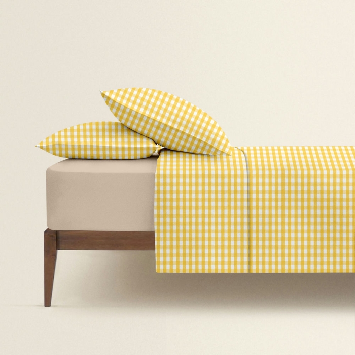 Сімейна постільна білизна з простирадлом на резинці YELLOW CHECK