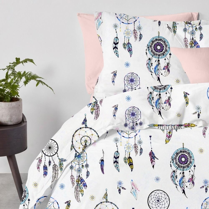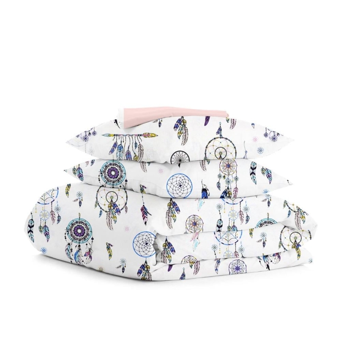 Сімейна постільна білизна з простирадлом на резинці BLUE DREAMCATCHER CS4