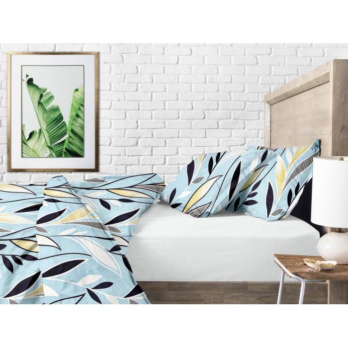 Сімейна постільна білизна з простирадлом на резинці BLUE SEAWEED CS2