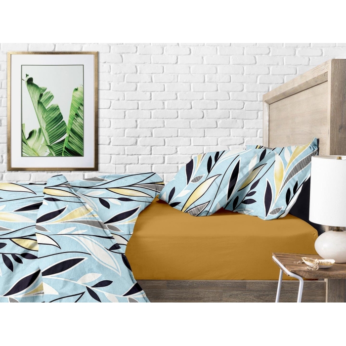 Сімейна постільна білизна з простирадлом на резинці BLUE SEAWEED