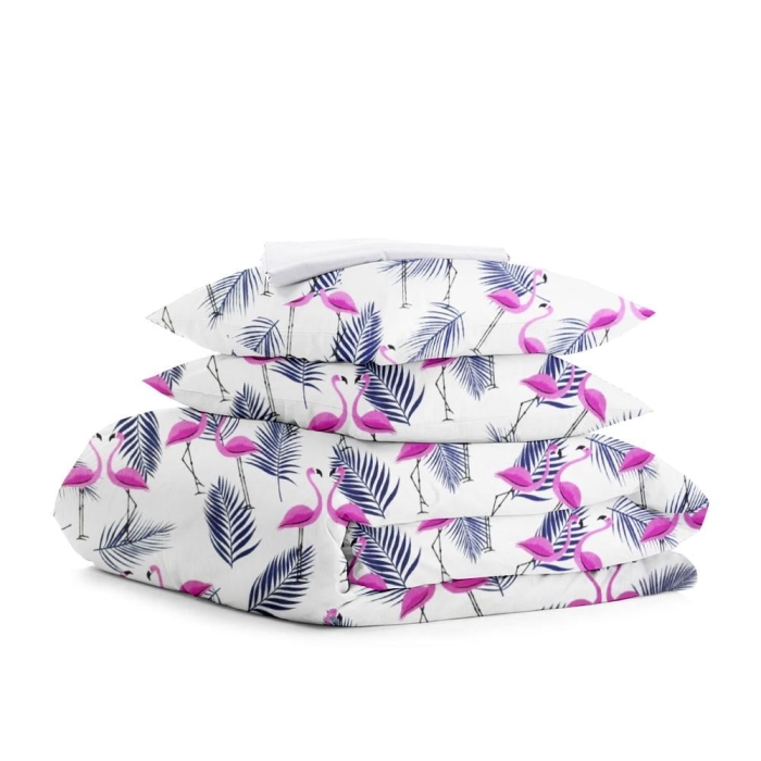Сімейна постільна білизна з простирадлом на резинці FLAMINGO