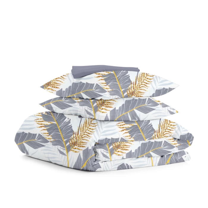 Сімейна постільна білизна з простирадлом на резинці GREY PALM
