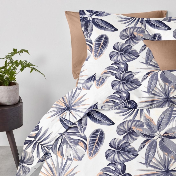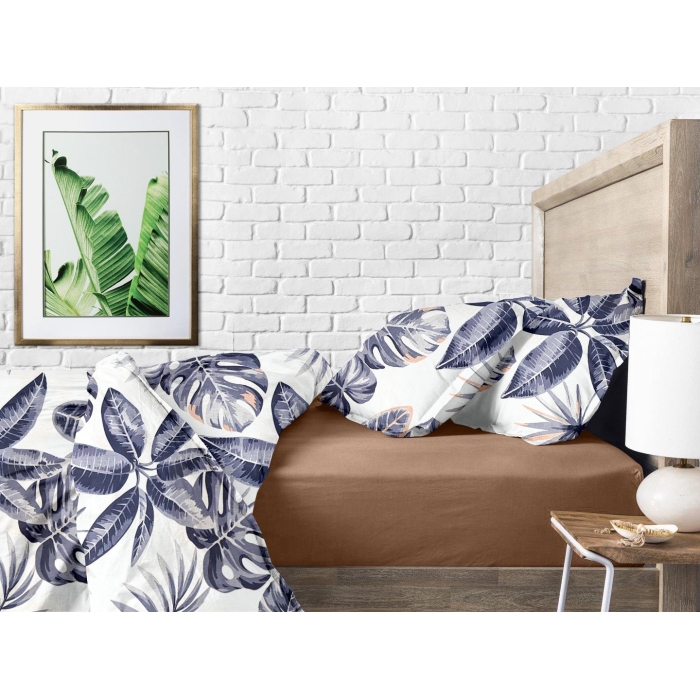 Сімейна постільна білизна з простирадлом на резинці PALM LEAVES CS1