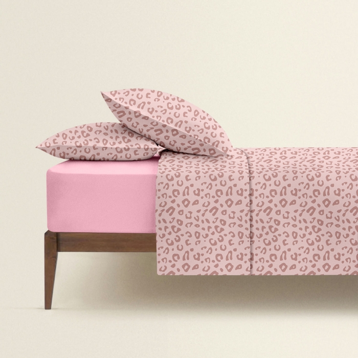 Schnellsuche , , Рожевий, Природа, Фланель, 180х220 см, Двоспальна постіль фланель з простирадлом на резинці PASTEL LEOPARD