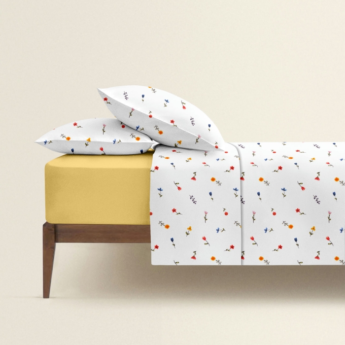 Двоспальна постільна білизна фланель з простирадлом на резинці WILDFLOWER DREAMS