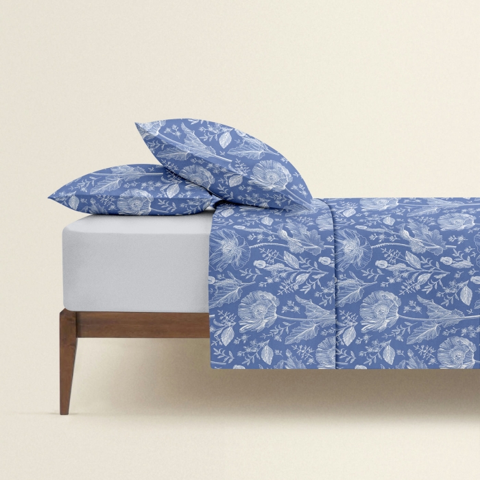 Двоспальна постільна білизна сатин з простирадлом на резинці BOTANIC FLORA STORMY CS1