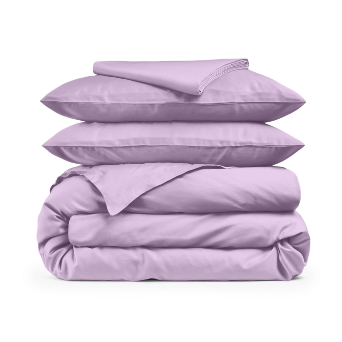 Двоспальна постільна білизна сатин з простирадлом на резинці LAVENDER