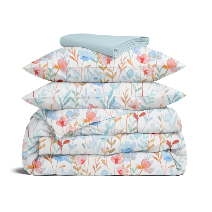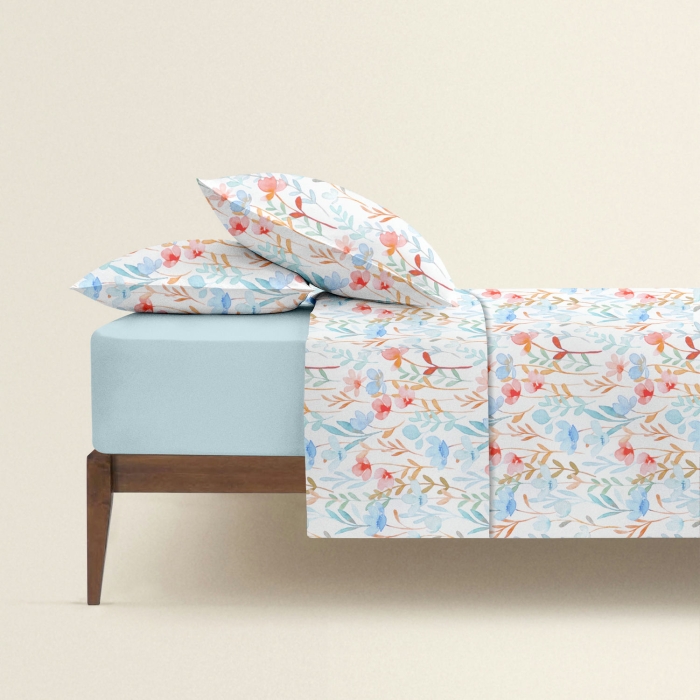 Двоспальна постільна білизна з простирадлом на резинці AQUARELLE FLOWERS CS6