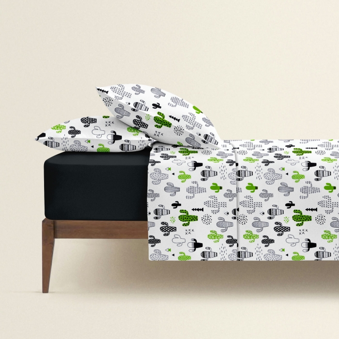 Двоспальна постільна білизна з простирадлом на резинці CACTUS CS18