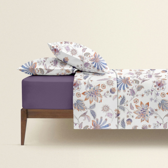 Двоспальна постільна білизна з простирадлом на резинці FLORAL ORNAMENT