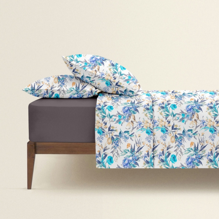 Двоспальна постільна білизна з простирадлом на резинці FLORAL