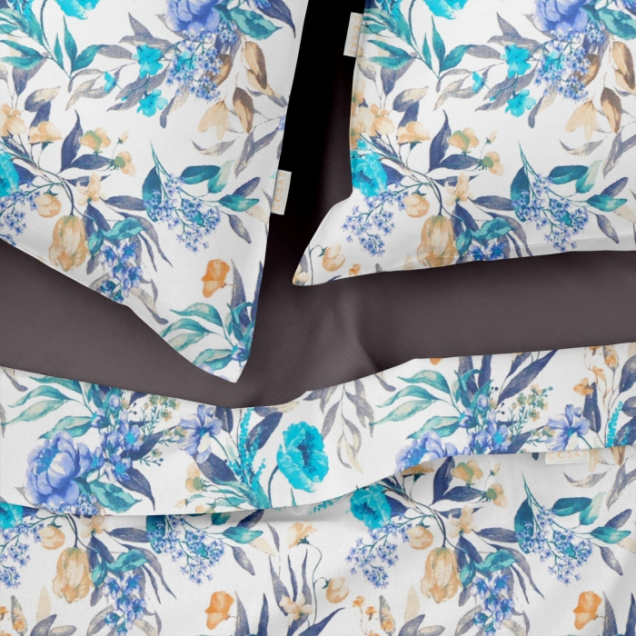 Schnellsuche , гілки, листя, рослини, природа, квіти, Бірюзовий, Квіти, Ранфорс, 180х220 см, Двоспальна постіль з простирадлом на резинці FLORAL