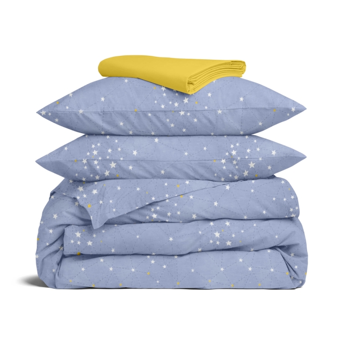 Простирадло на резинці 140х200х20 см - 1 шт. Підодіяльник 180х220 см - 1 шт. Наволочка 50х70 см - 2 шт.