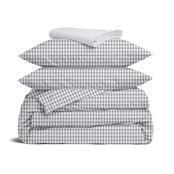 Двоспальна постільна білизна з простирадлом на резинці HOUNDSTOOTH CS4