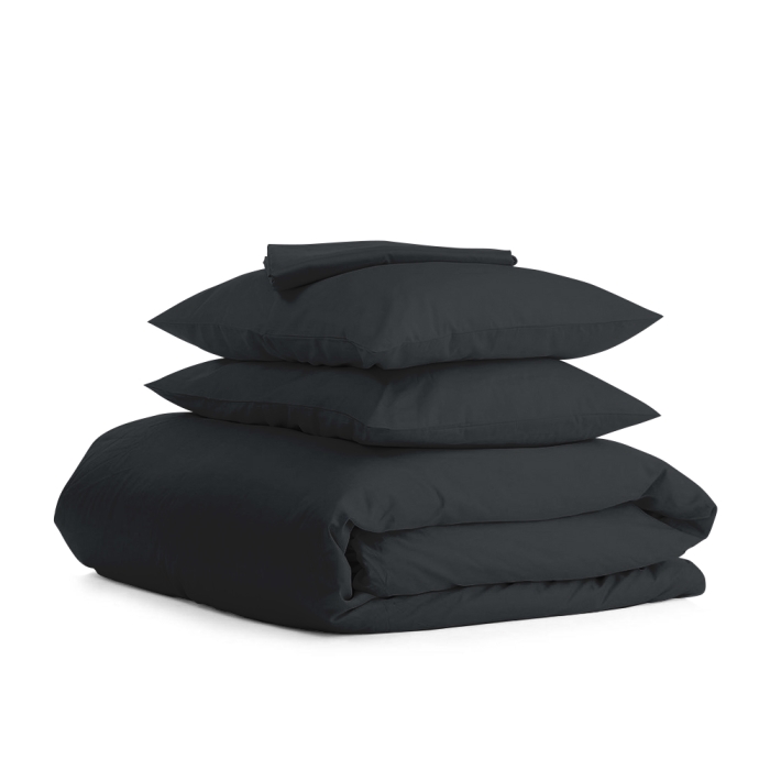 Schnellsuche , Однотонний чорний ранфорс T, Чорний, , Ранфорс, 180х220 см, Двоспальна постіль з простирадлом на резинці PANTHER