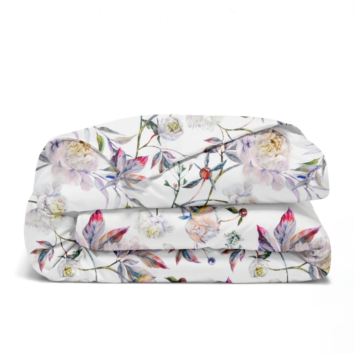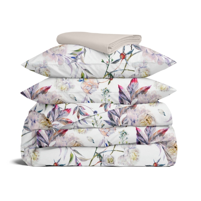 Schnellsuche , , Білий, Квіти, Ранфорс, 180х220 см, Двоспальна постіль з простирадлом на резинці PEONY