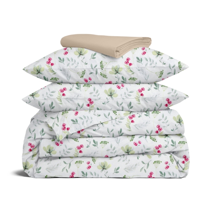 Schnellsuche , , Зелений, Квіти, Ранфорс, 180х220 см, Двоспальна постіль з простирадлом на резинці SUMMER FLOWERS