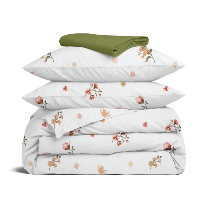 Двоспальна постільна білизна з простирадлом на резинці TINY FLOWERS CS1