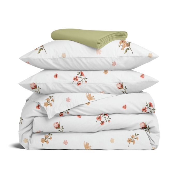 Двоспальна постільна білизна з простирадлом на резинці TINY FLOWERS CS3