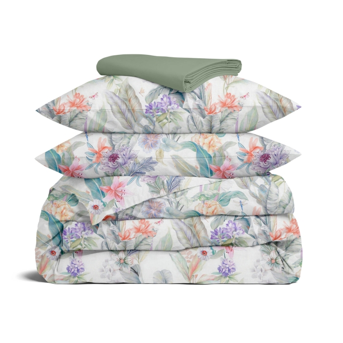 Двоспальна постільна білизна з простирадлом на резинці TROPICAL FLOWERS CS3