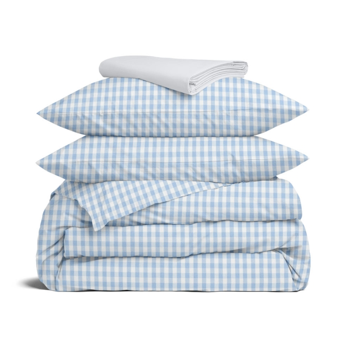 Двоспальна постільна білизна з простирадлом на резинці BLUE CHECK CS1