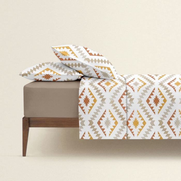 Schnellsuche , , Бежевий, Геометрія, Ранфорс, 180х220 см, Двоспальна постільна білизна з простирадлом на резинці BOHO FLAME