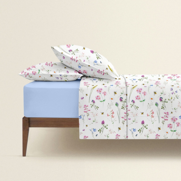Двоспальна постільна білизна з простирадлом на резинці FLORAL DANCE CS3