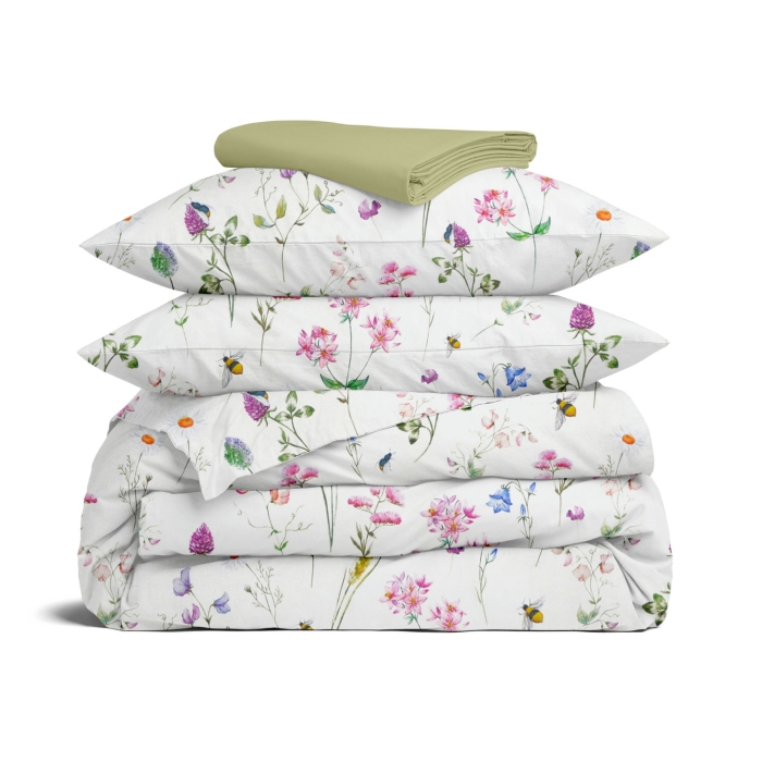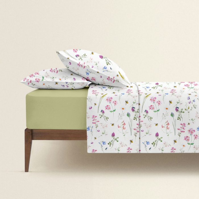 Двоспальна постільна білизна з простирадлом на резинці FLORAL DANCE CS4