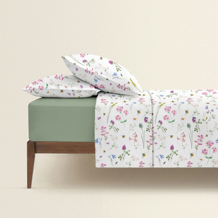 Двоспальна постільна білизна з простирадлом на резинці FLORAL DANCE CS5