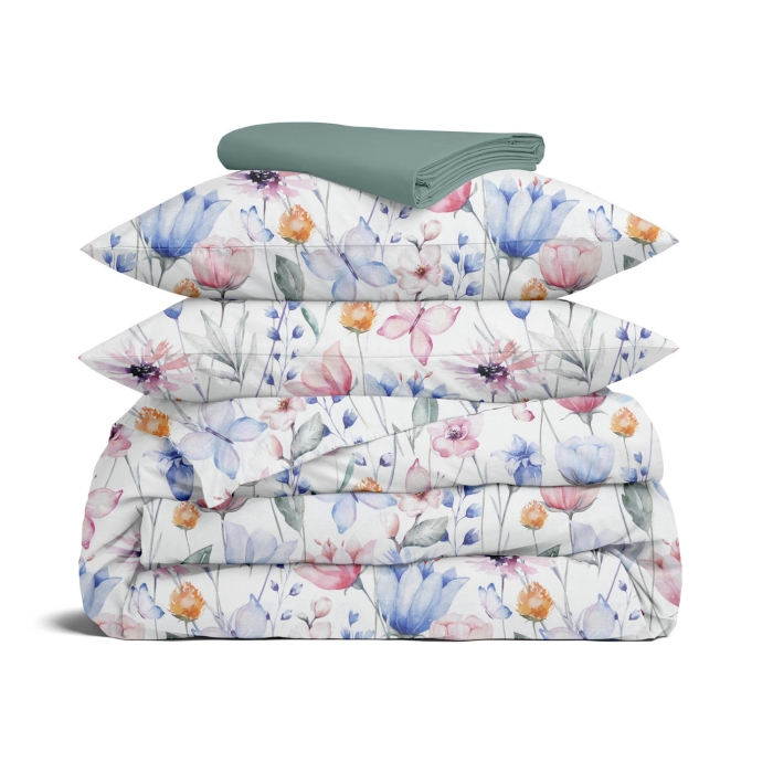 Двоспальна постільна білизна з простирадлом на резинці FLORAL DREAM CS1