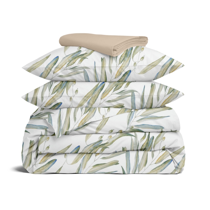 Schnellsuche , , Оливковий, Рослини, Ранфорс, 180х220 см, Двоспальна постільна білизна з простирадлом на резинці OLIVE GARDEN
