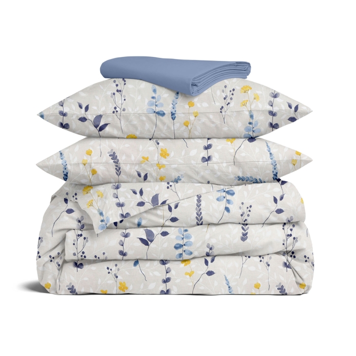 Двоспальна постільна білизна з простирадлом на резинці PASTEL BLOOM